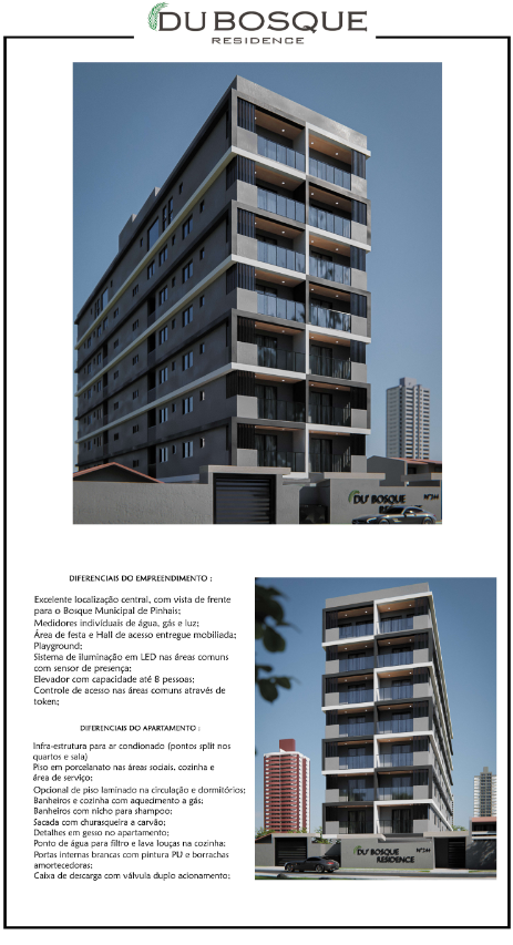 DU BOSQUE RESIDENCE é um empreendimento CASA NOVA IMÓVEIS, em uma das localizações mais privilegiadas e valorizadas da cidade, de frente para o Bosque Municipal de Pinhais. Fino e sofisticado acabamento, proporcionando comodidade e total estrutura para você e sua família!